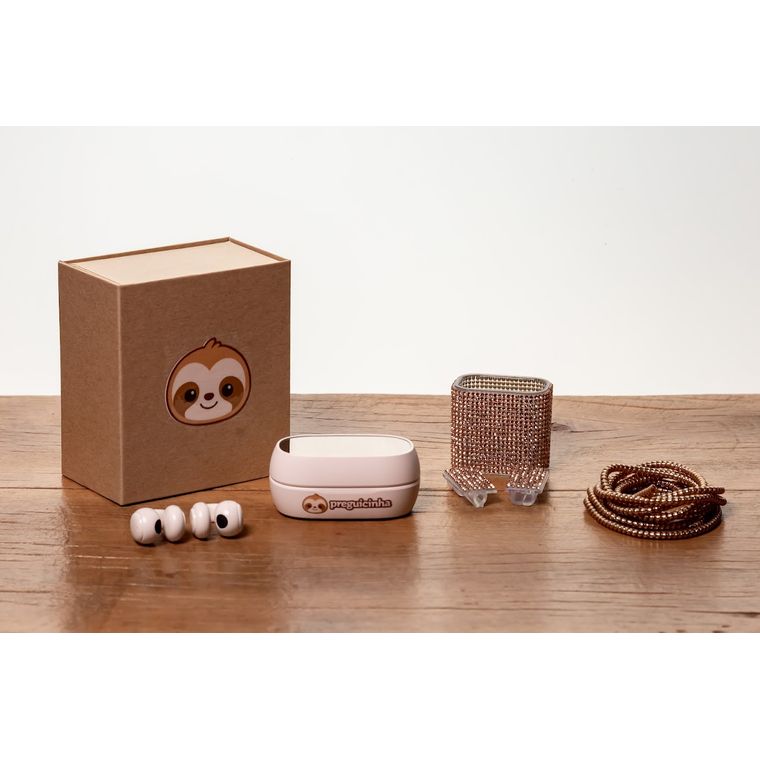 Bag + Caixa Kraft + Fone de ouvido brinco espelho + Corrente celular + Acessorios carregador