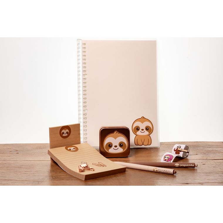 Bag + Lata com clips + 2 canetas + 2 blocos de anotacao + Caderno capa transparente